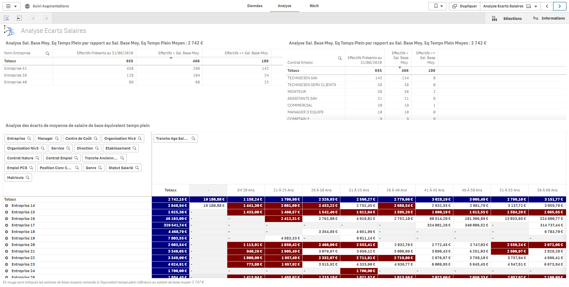 Analyse des écarts du salaire de base équivalent temps plein ;