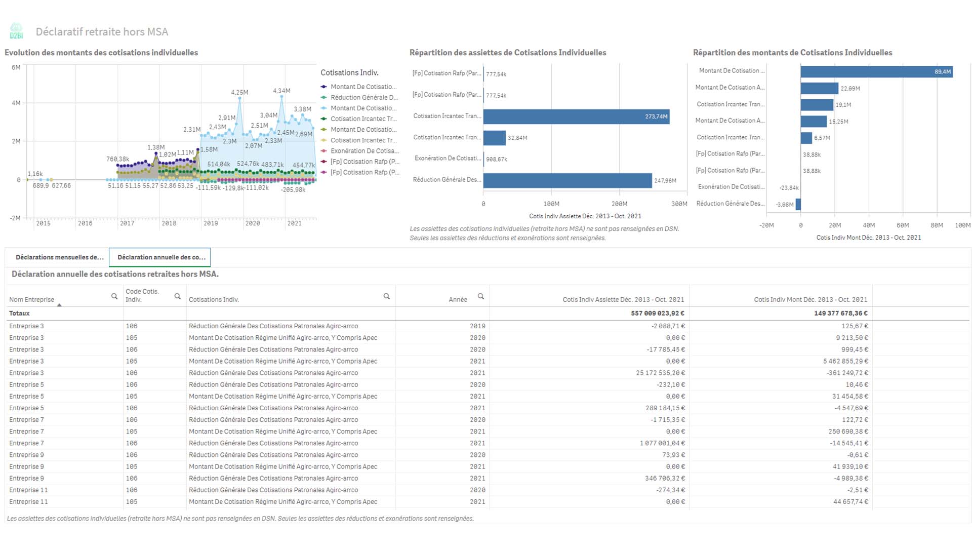 Le tableau de bord de tous les éléments de cotisations individuelles intervenant dans les différents blocs de la DSN ;