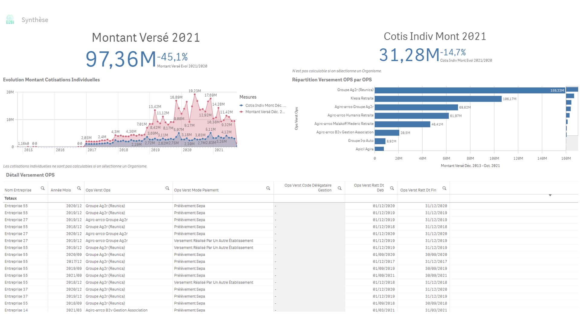 Une vision détaillée des cotisations individuelles par caisse + leur évolution par mois ;