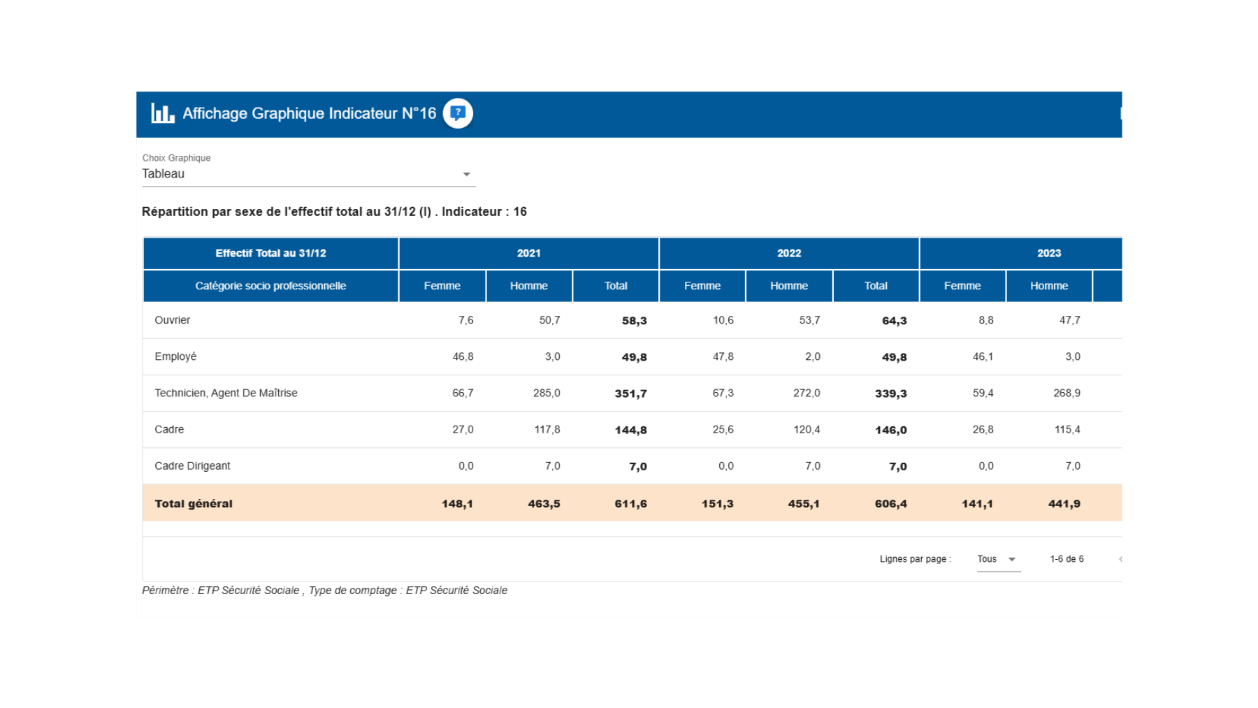 • Un rappel de l’article législatif pour chaque représentation d’indicateur ;