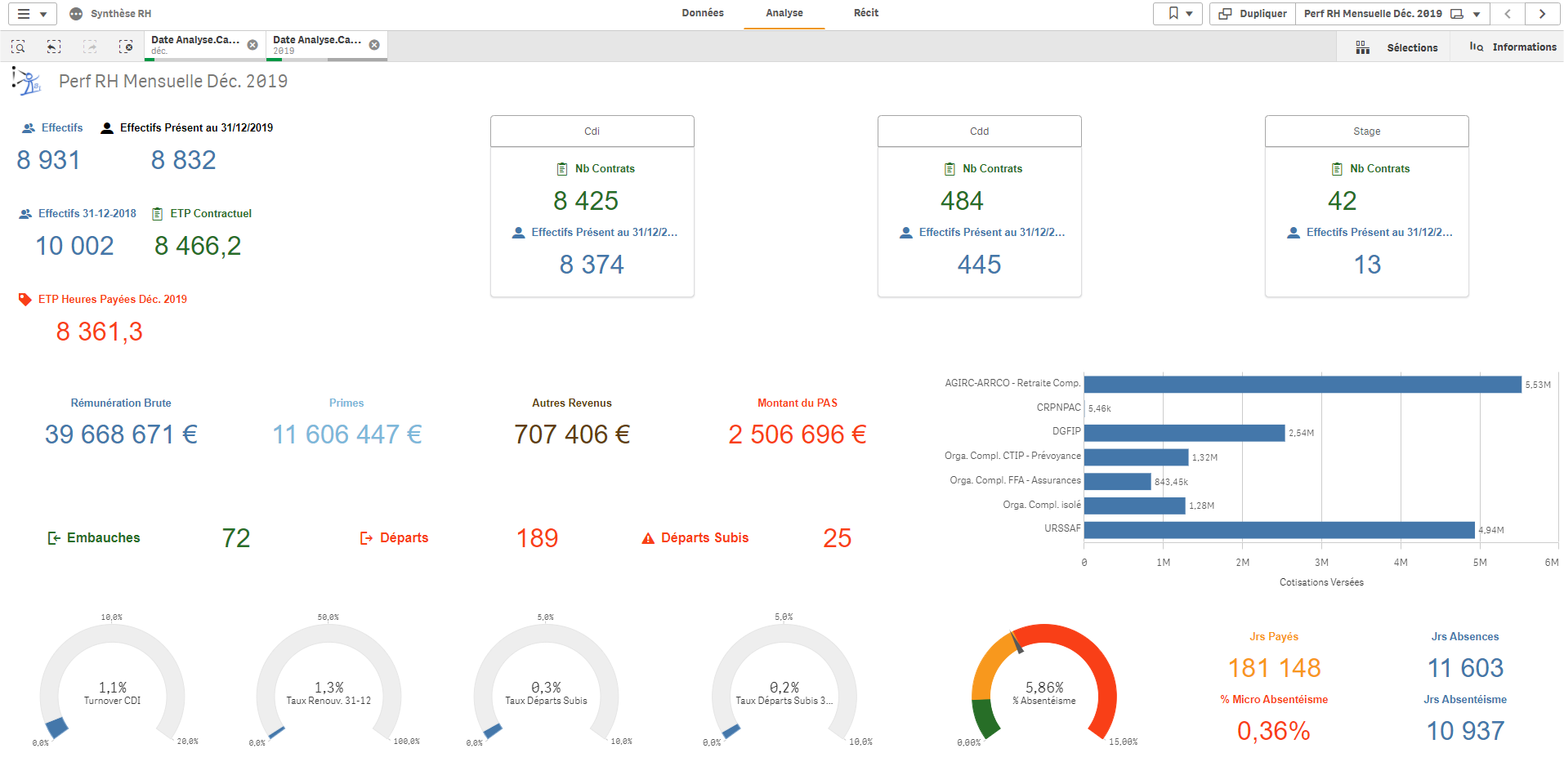 Ce qui permet d’avoir une vision globale des indicateurs sociaux quantitatifs pour le suivi mensuel de l’activité dans l’entreprise à partir de 4 thématiques :