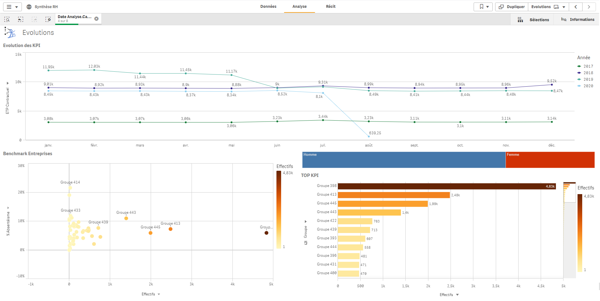 Le Cockpit RH est paramétrable par un profil utilisateur particulier qui pourra choisir les thématiques retenues et les axes d’analyse souhaités.