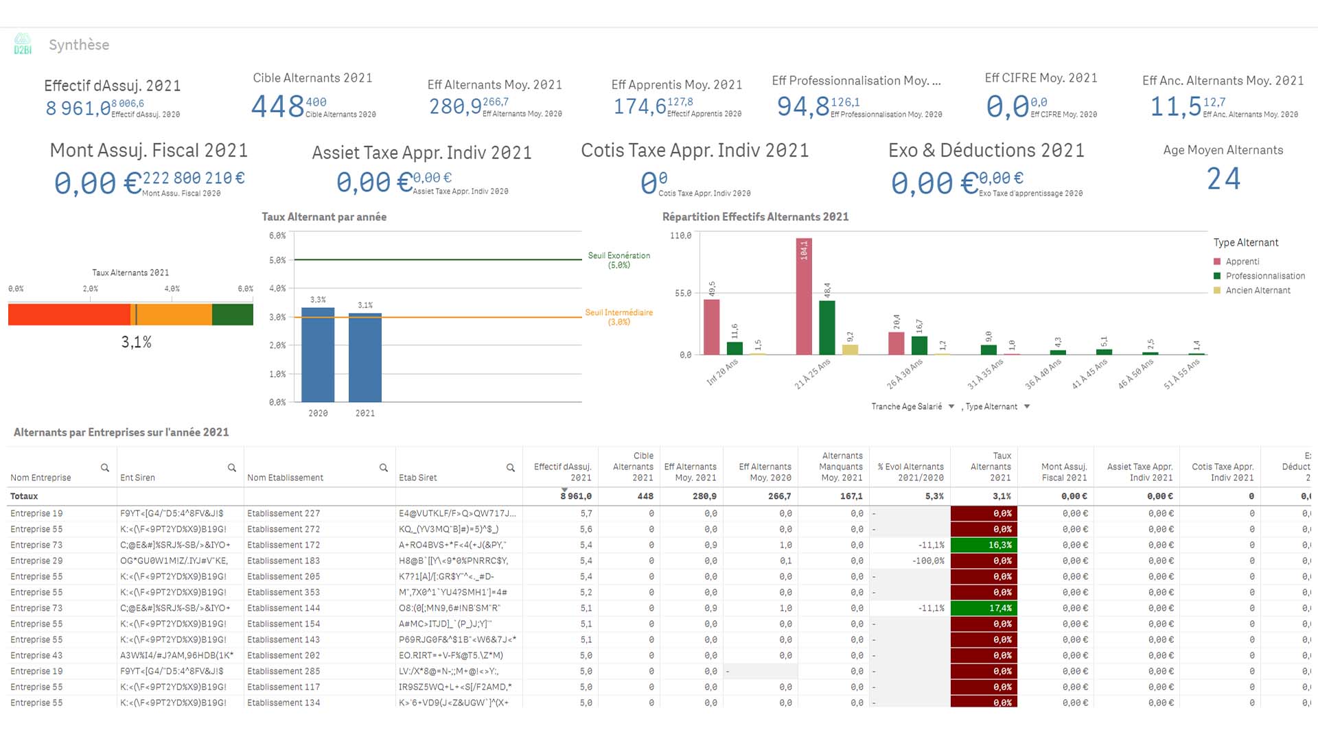 L’application se décline en multiples feuilles permettant un suivi et une analyse fine de la population des Alternants :