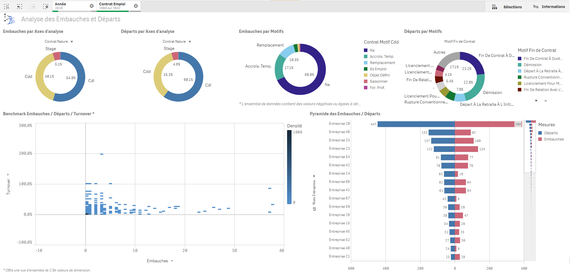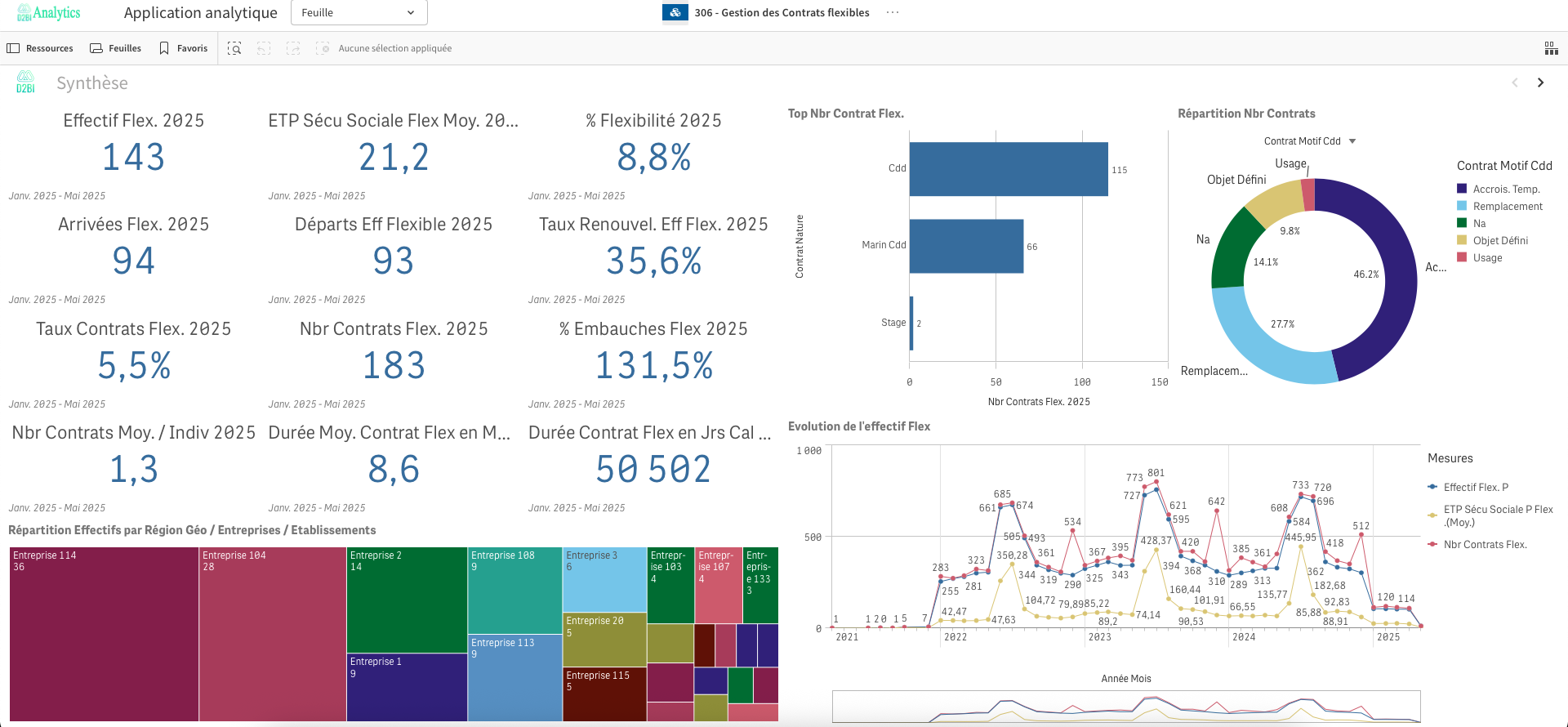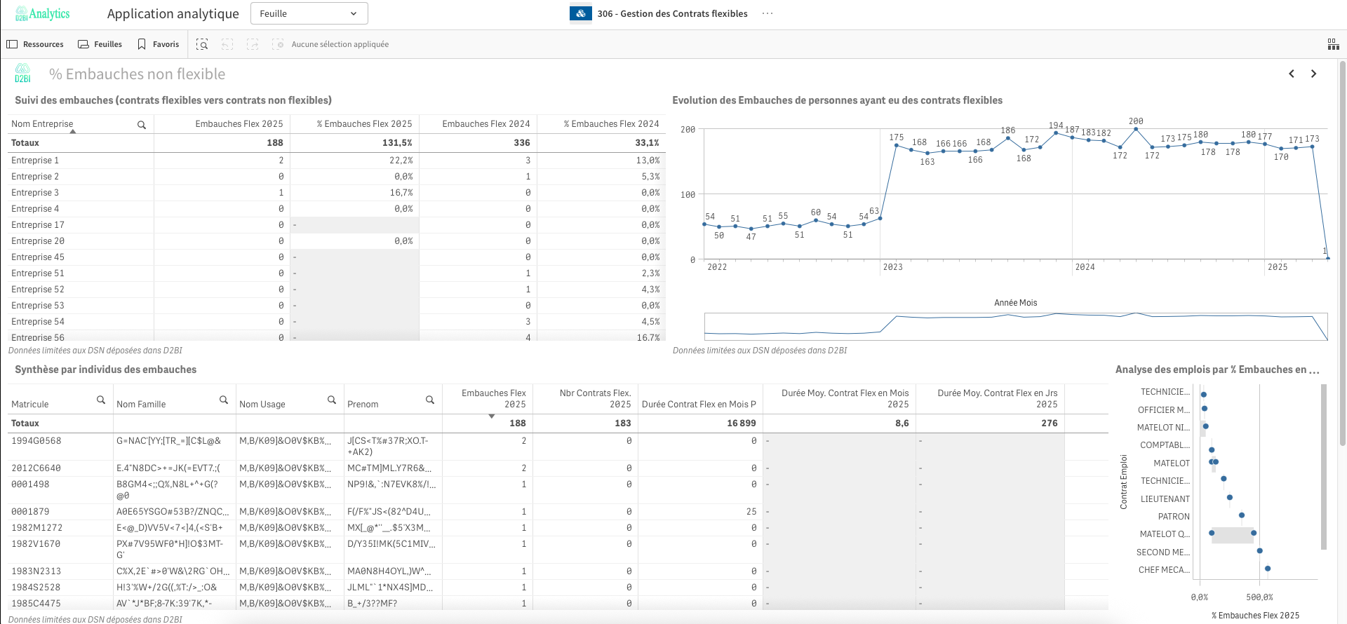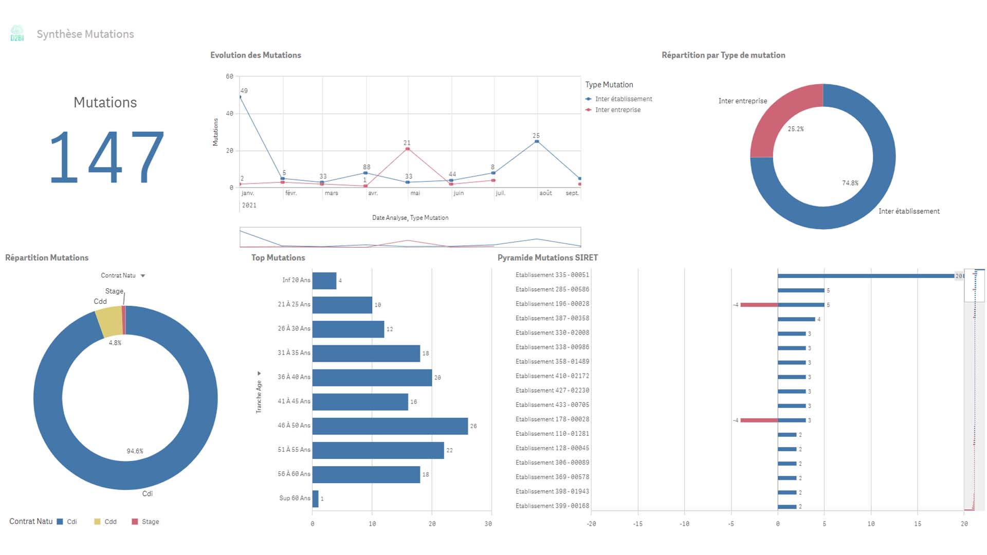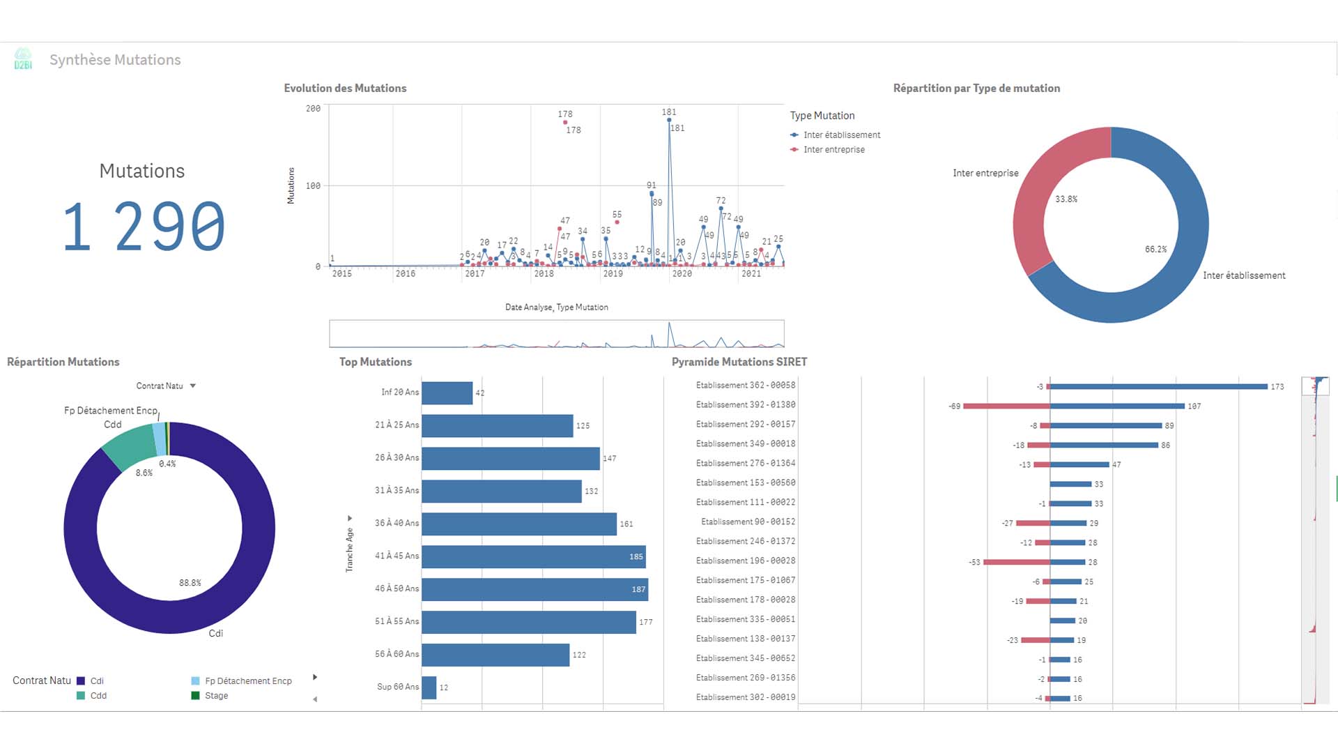 L’application se décline en multiples feuilles permettant un suivi et une analyse fine des mutations déclarées en DSN :