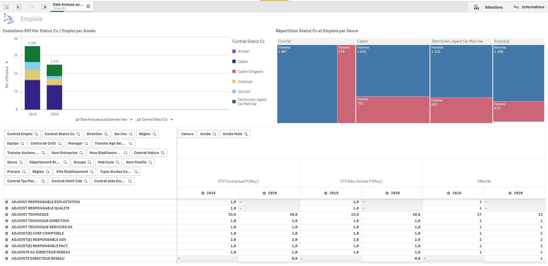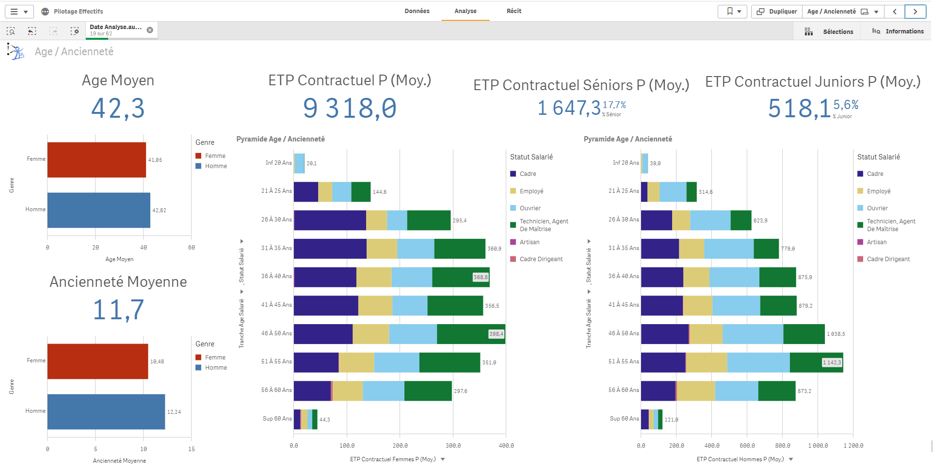 L’application se décline en multiples feuilles permettant un suivi et une analyse fine des effectifs :