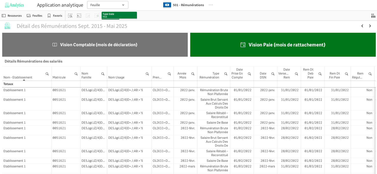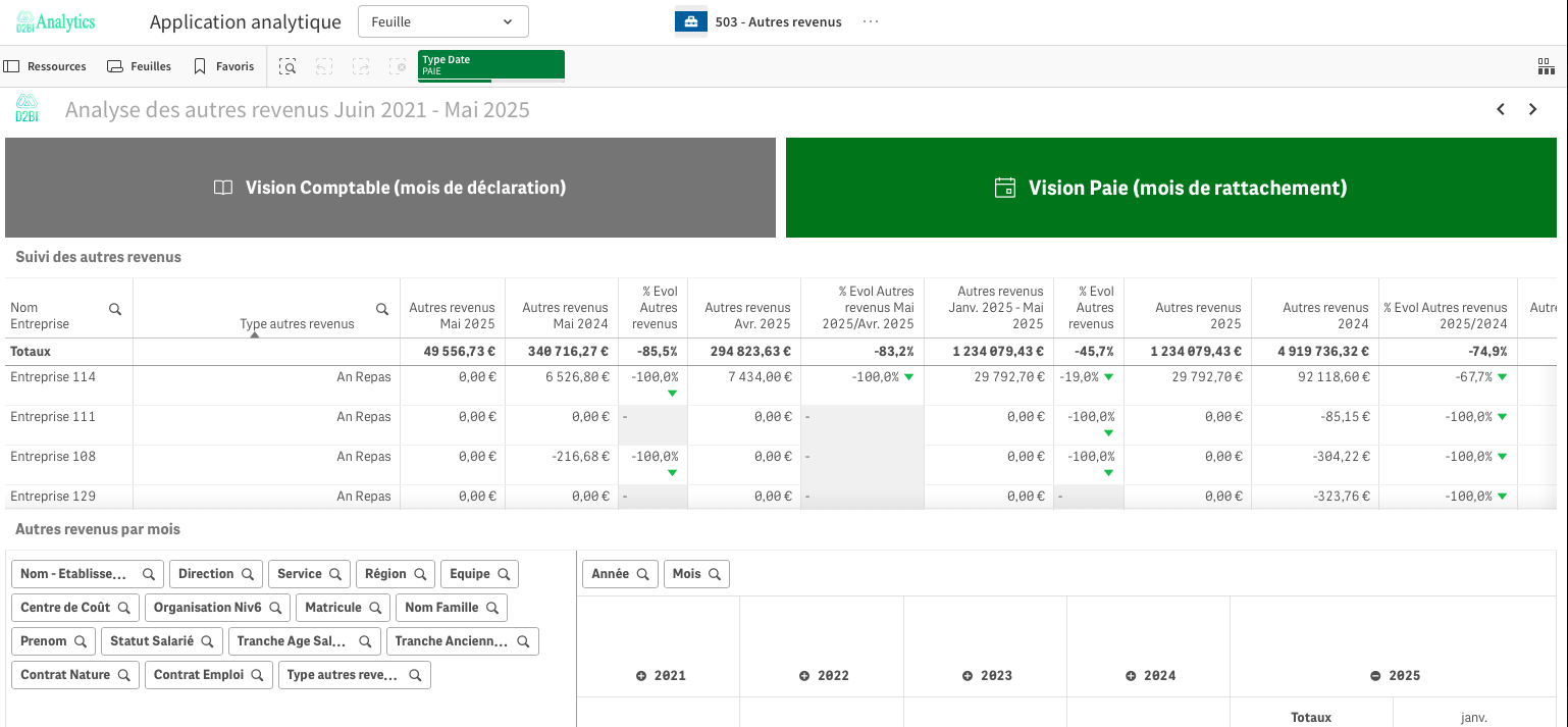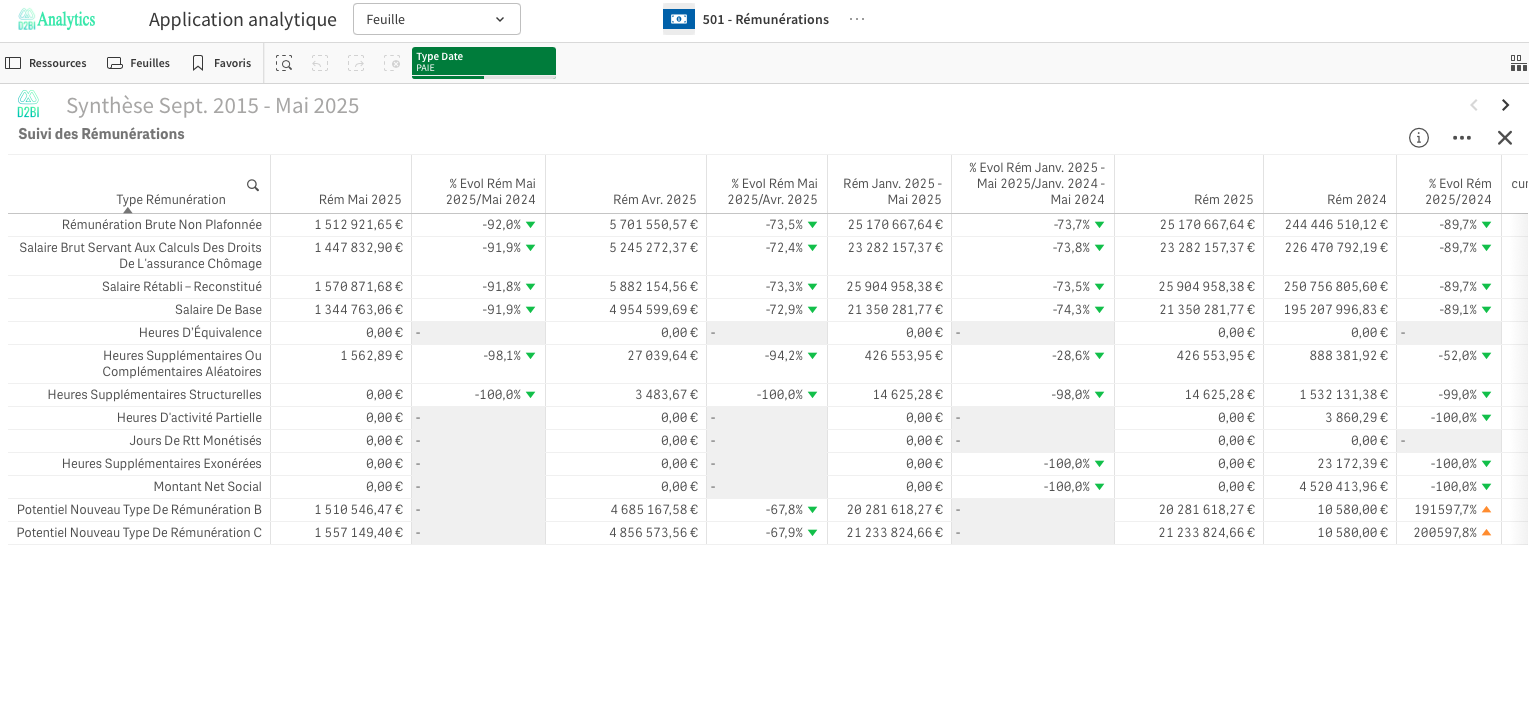 Analyse de l'évolution des types de rémunération via des tableaux annuels et mensuels ;