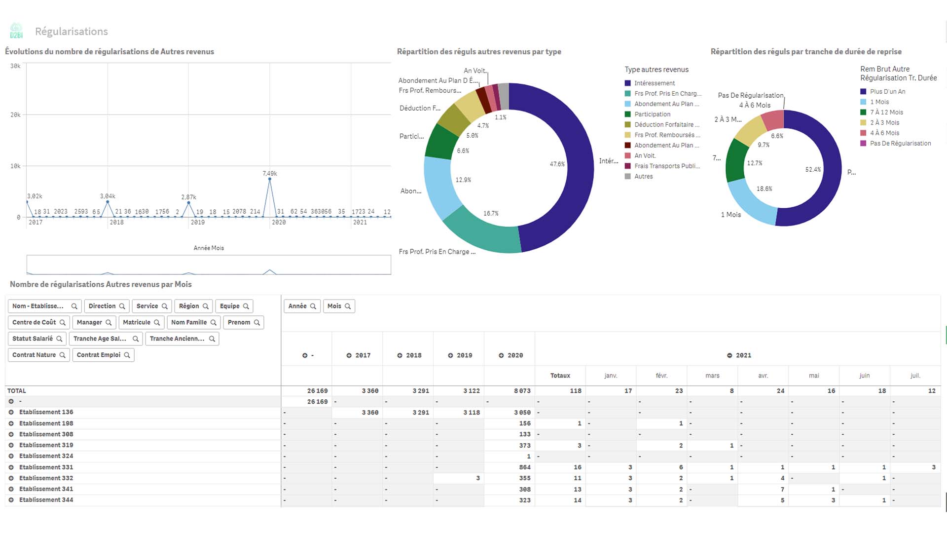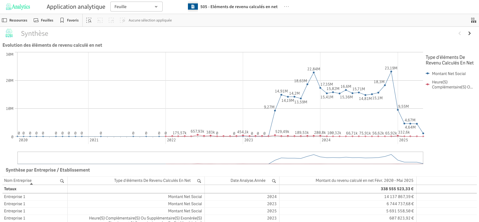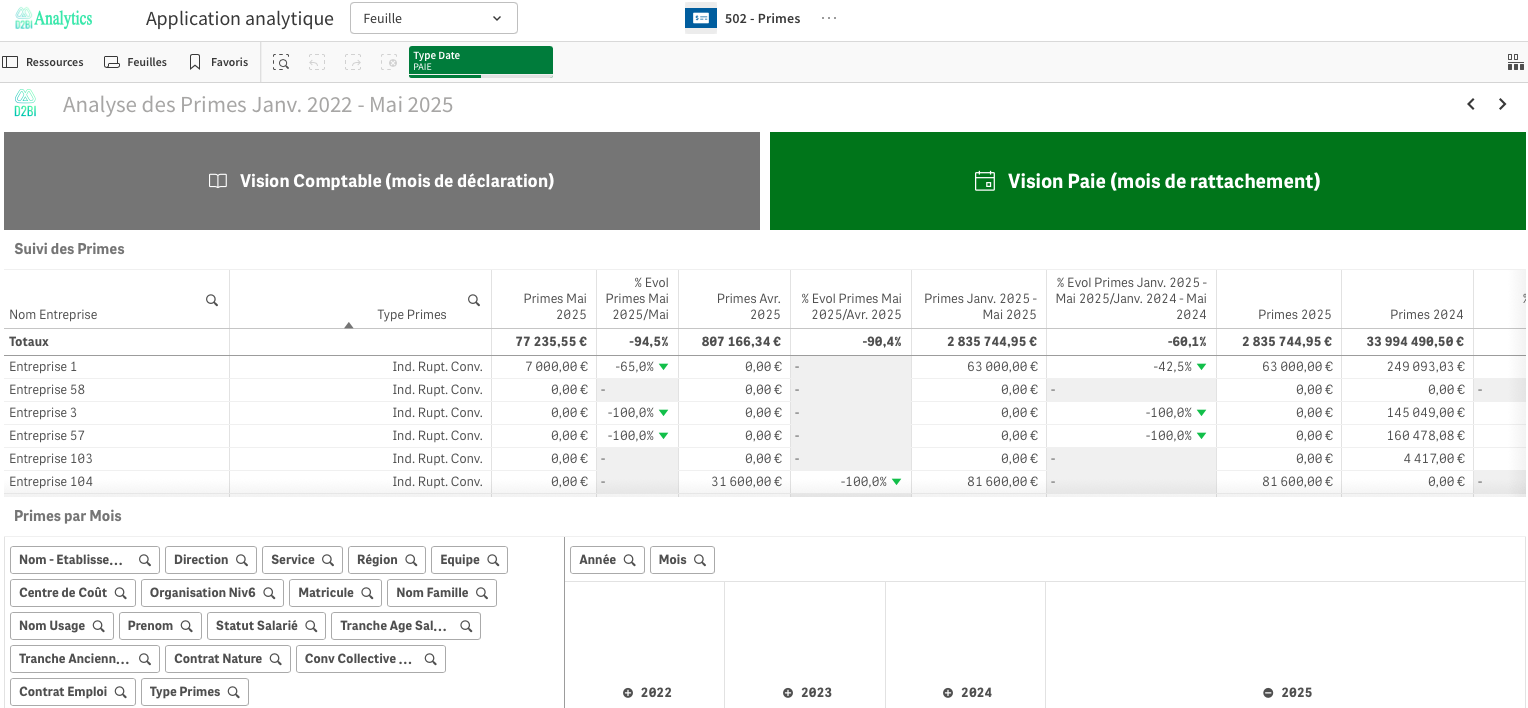 Analyse de l'évolution des types de rémunération via des tableaux annuels et mensuels ;