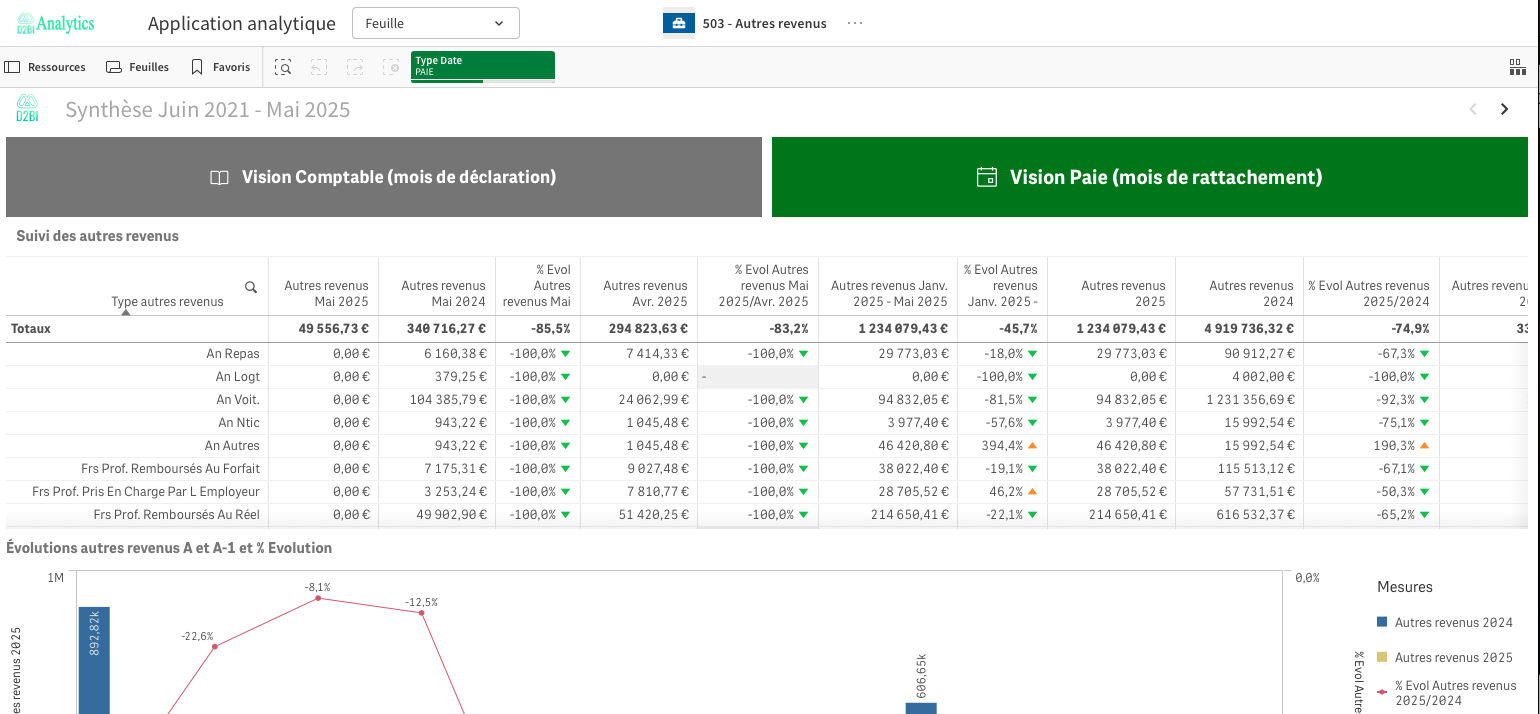 Analyse de l'évolution des types d'autres revenus via des tableaux annuels et mensuels ;