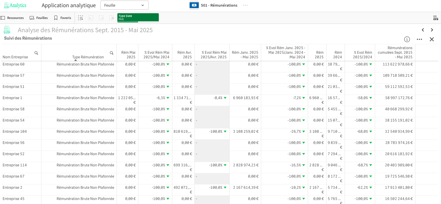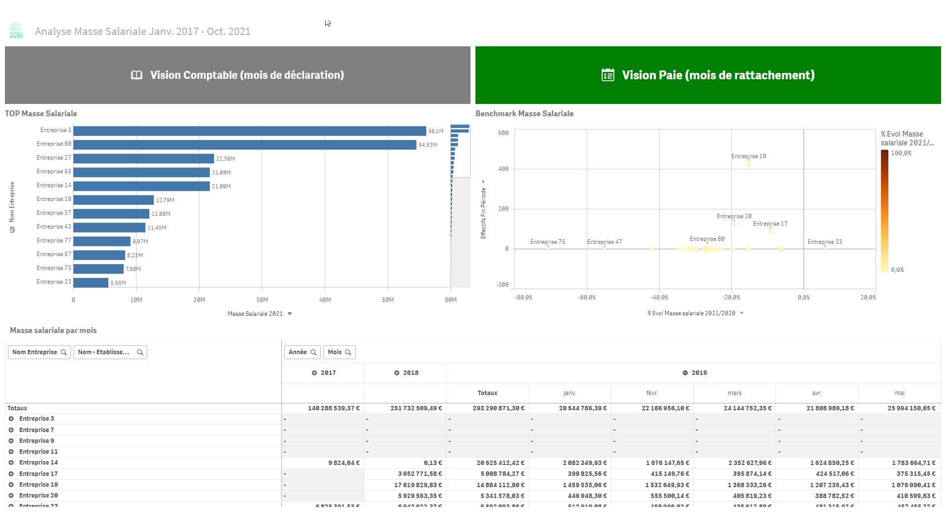 Analyse de la masse salariale par entreprise et établissement via des TOP et